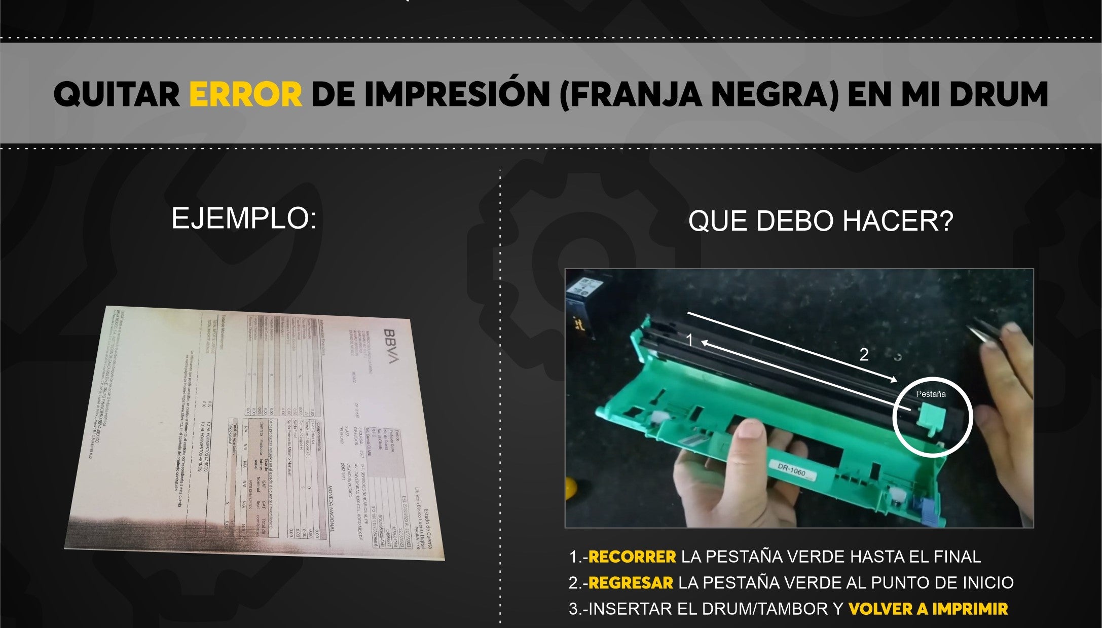 Si al imprimir con tu impresora Brother aparece una franja negra en la parte superior o inferior ...